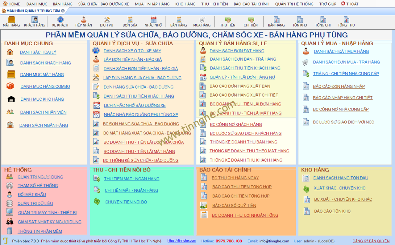 Màn hình quản lý trung tâm phần mềm quản lý sửa chửa , bảo dưỡng xe - Bán hàng phụ tùng (Ver 7.0.0)