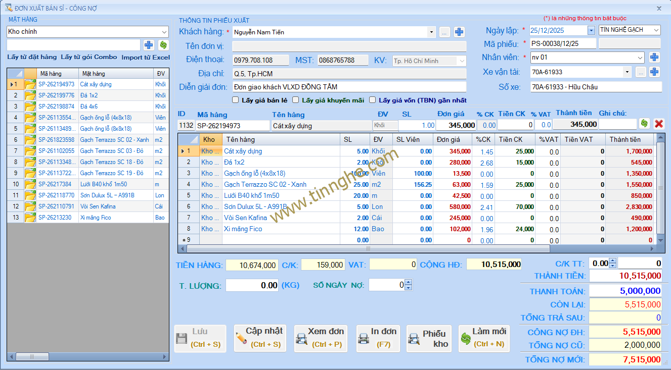 - Quản lý và tạo lập đơn xuất bán hàng bán sỉ/lẻ. Màn hình tạo lập đơn xuất - bán hàng thông mình với các tính năng: