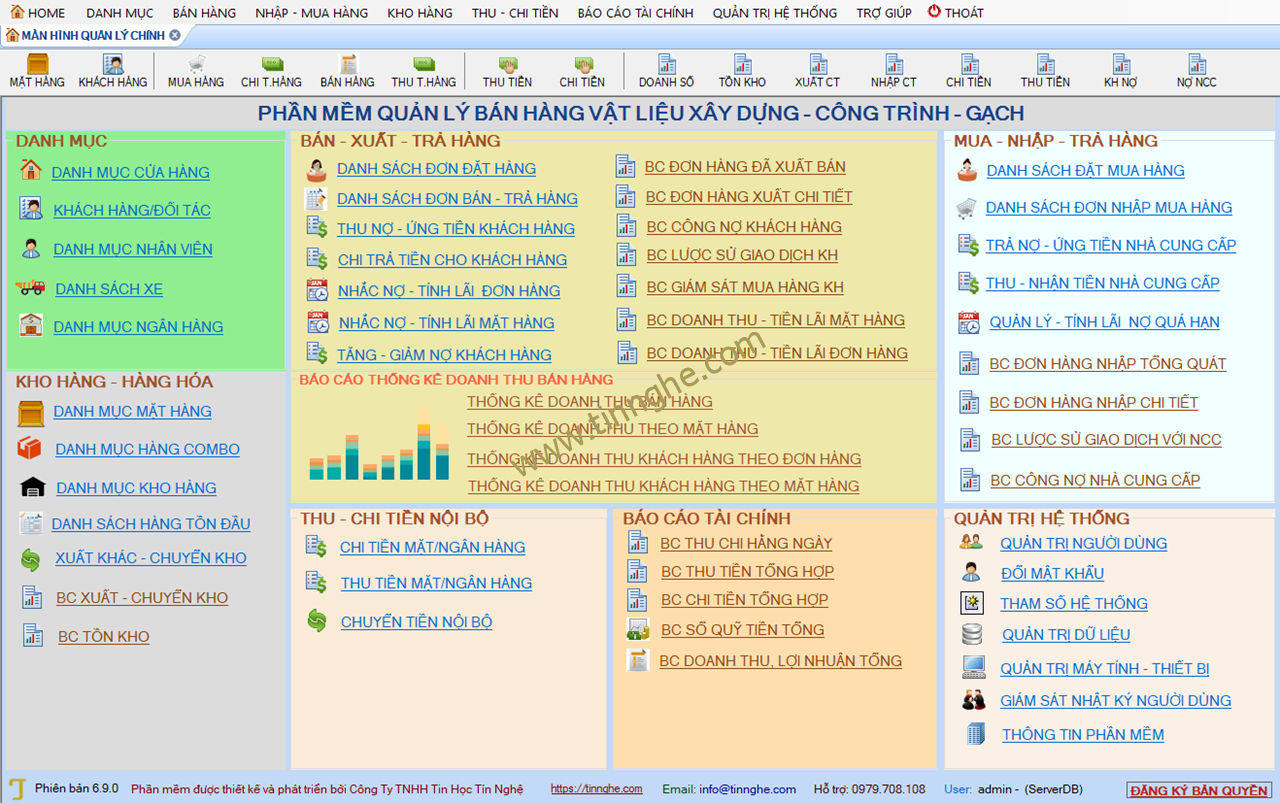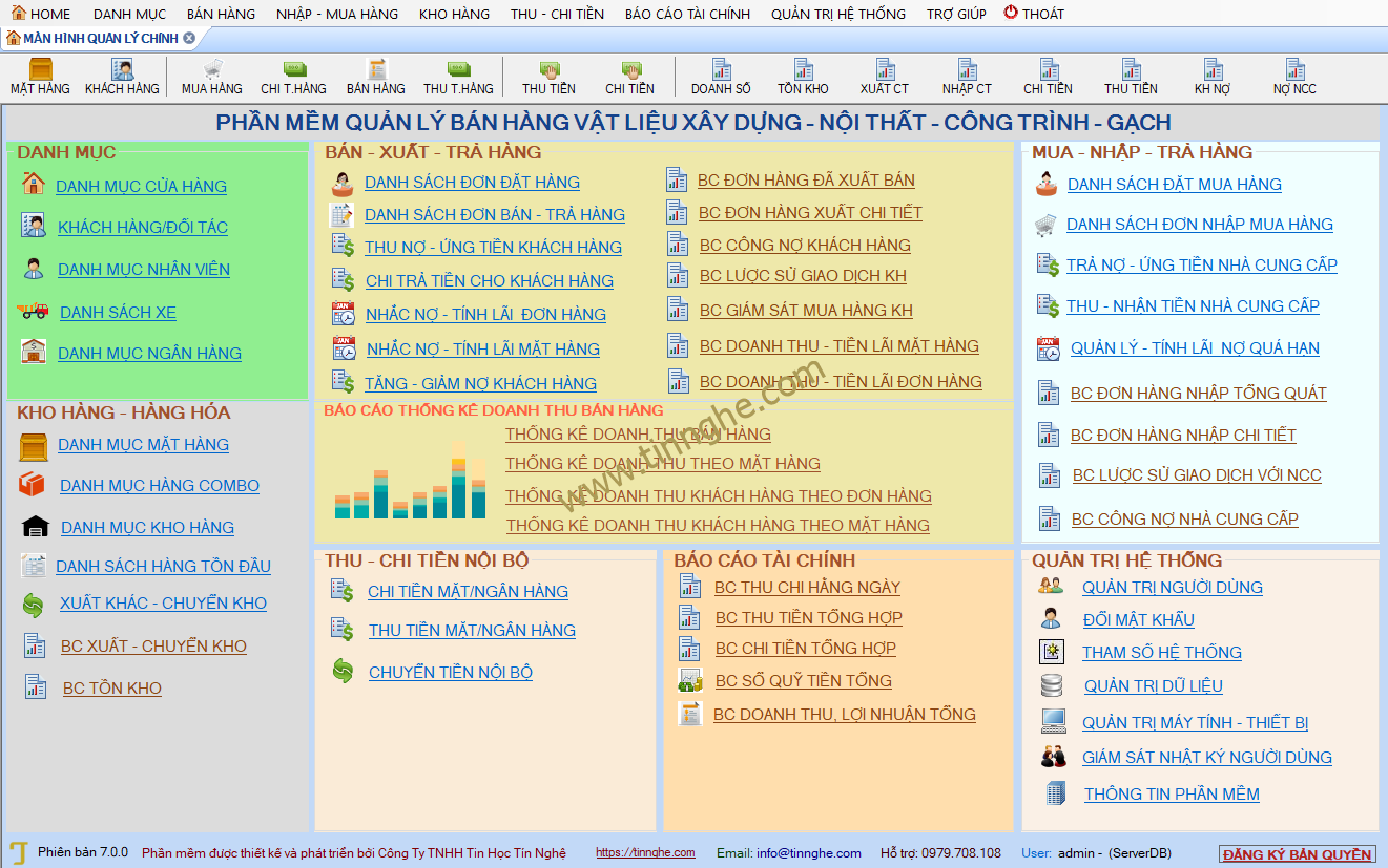 - Phần mềm dùng được cho cả hệ thống bán hàng nhiều nhà phân phối dùng chung với giải pháp sử dụng chung server dữ liệu ở các đại lý/nhà phân phối. (thuê server của Tín Nghệ hoặc khách hàng đã có sẵn server )