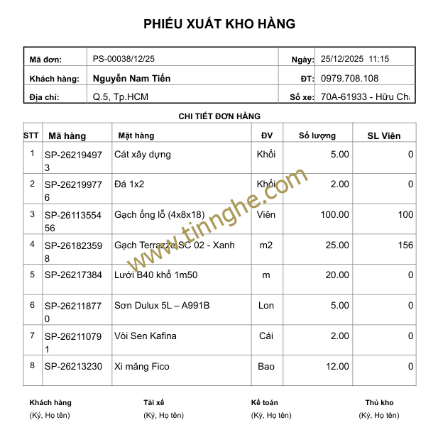 Báo cáo xuất hàng chi tiết