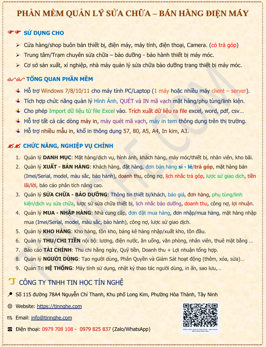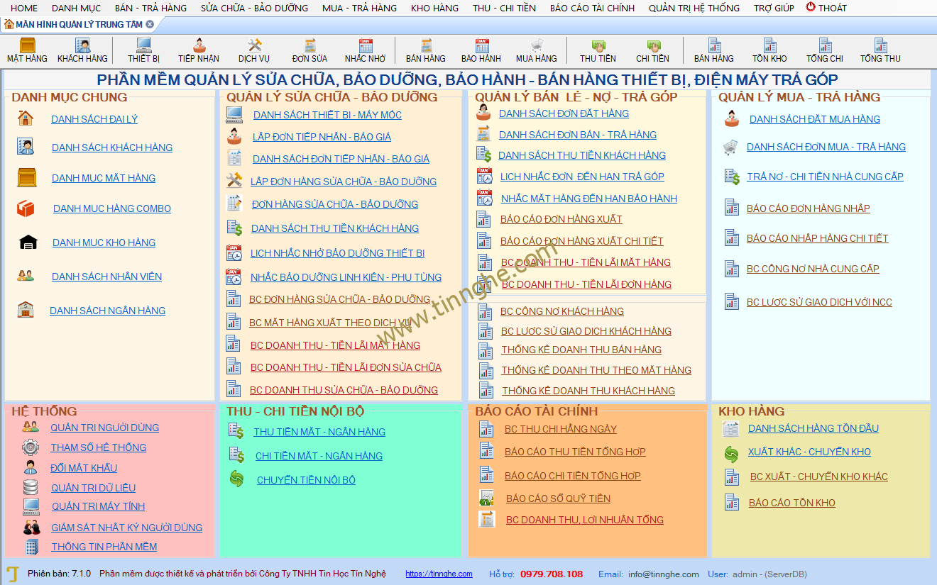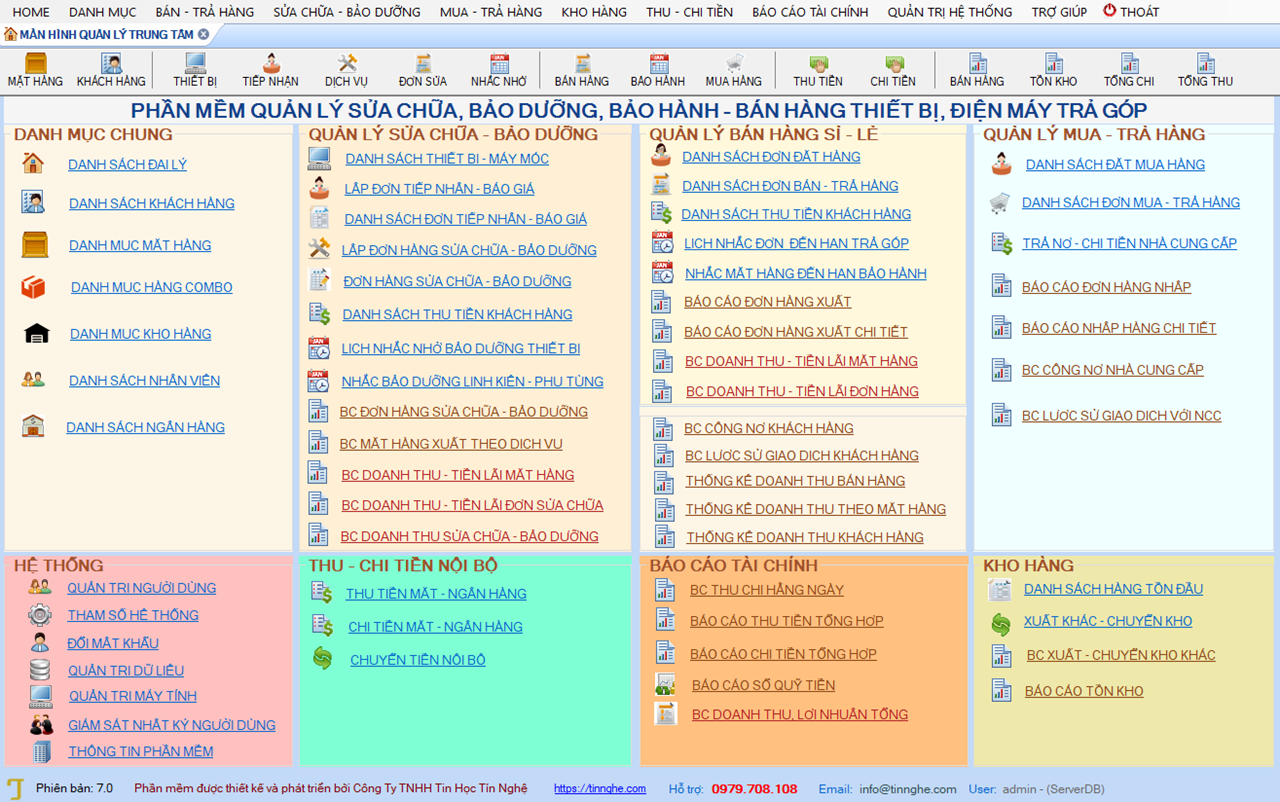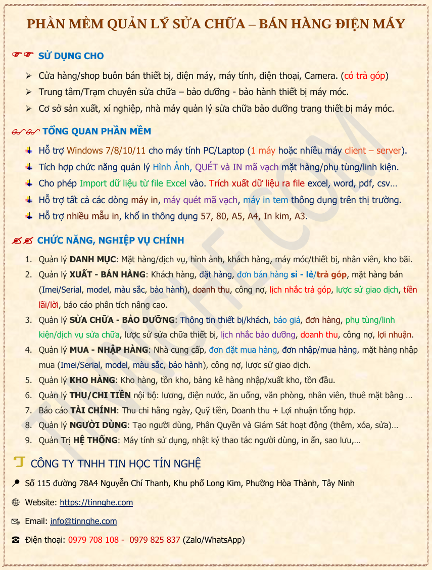 - Phần mềm dùng được cho cả hệ thống bán hàng nhiều trung tâm/ cửa hàng điện máy, sửa chữa - bảo hành, dùng chung với giải pháp sử dụng chung server dữ liệu. (thuê server của Tín Nghệ hoặc khách hàng đã có sẵn server )