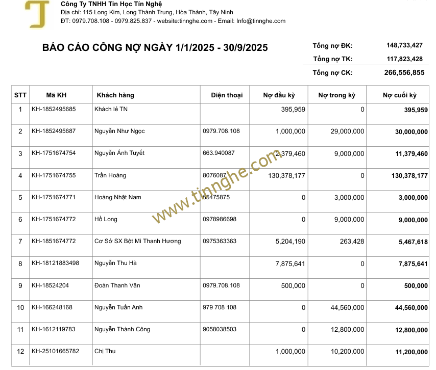 - Báo cáo công nợ tổng quát, chi tiết trên từng khách hàng