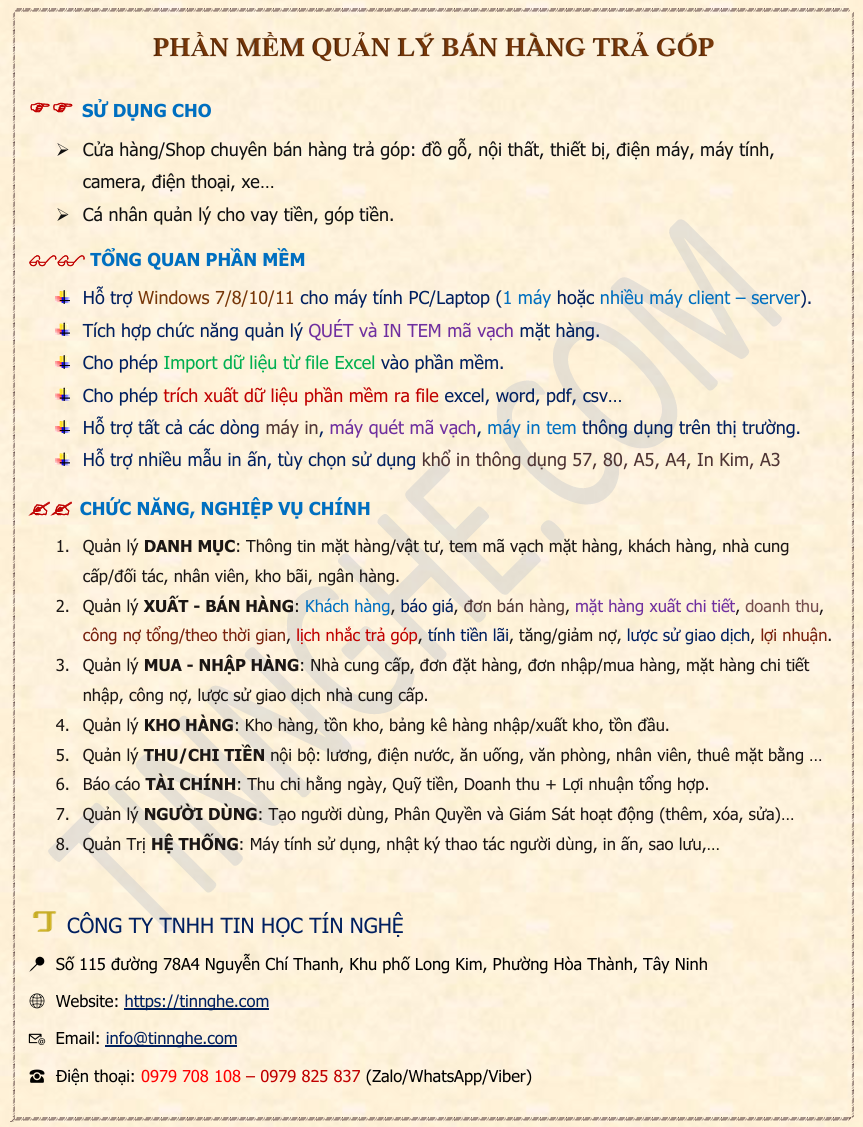 - Phần mềm dùng được cho cả hệ thống bán hàng nhiều nhà phân phối dùng chung với giải pháp sử dụng chung server dữ liệu ở các đại lý/nhà phân phối. (thuê server của Tín Nghệ hoặc khách hàng đã có sẵn server )