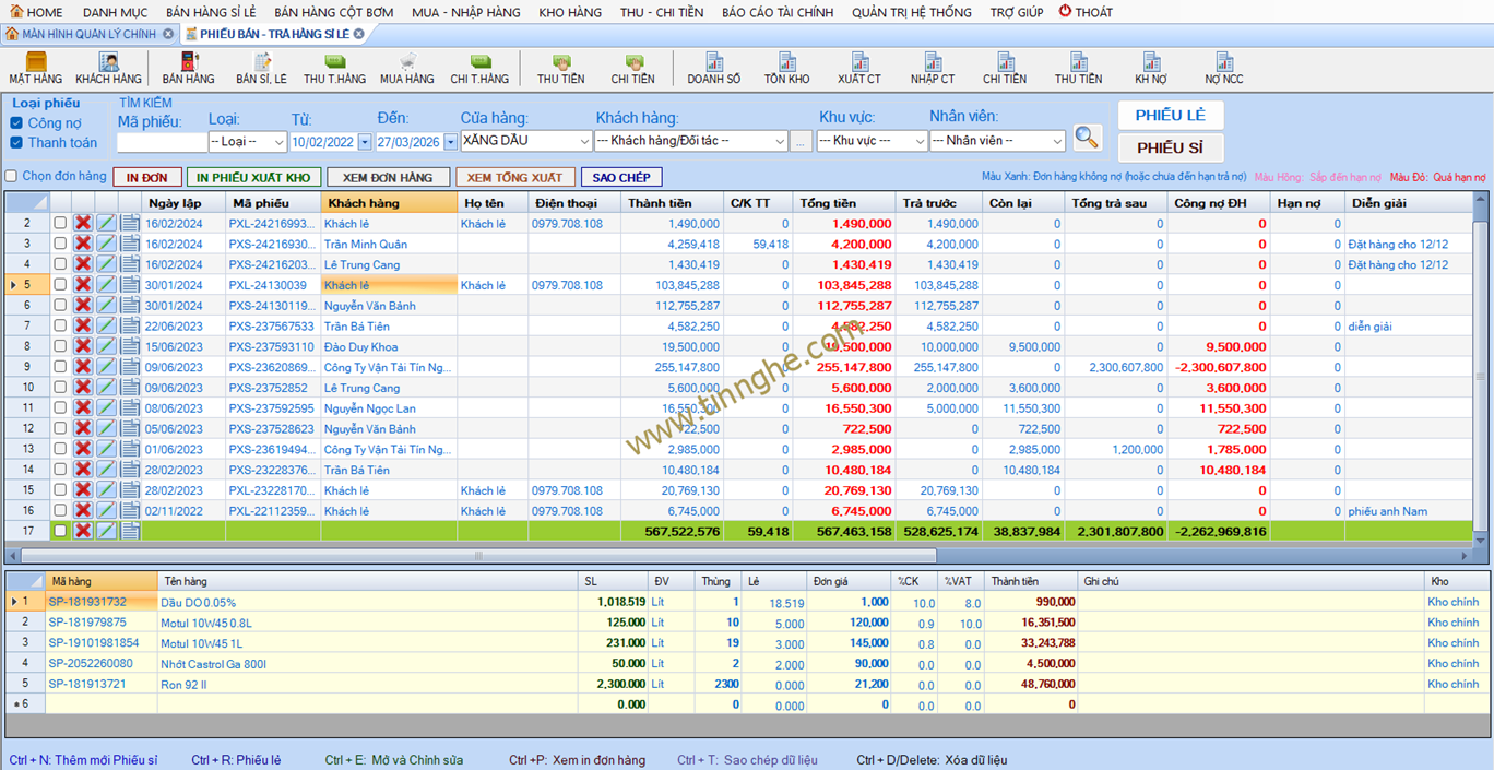 - Quản lý và tạo lập đơn bán hàng công nợ mặt hàng xăng dầu theo cột bơm, khách hàng, nhân viên bán hàng