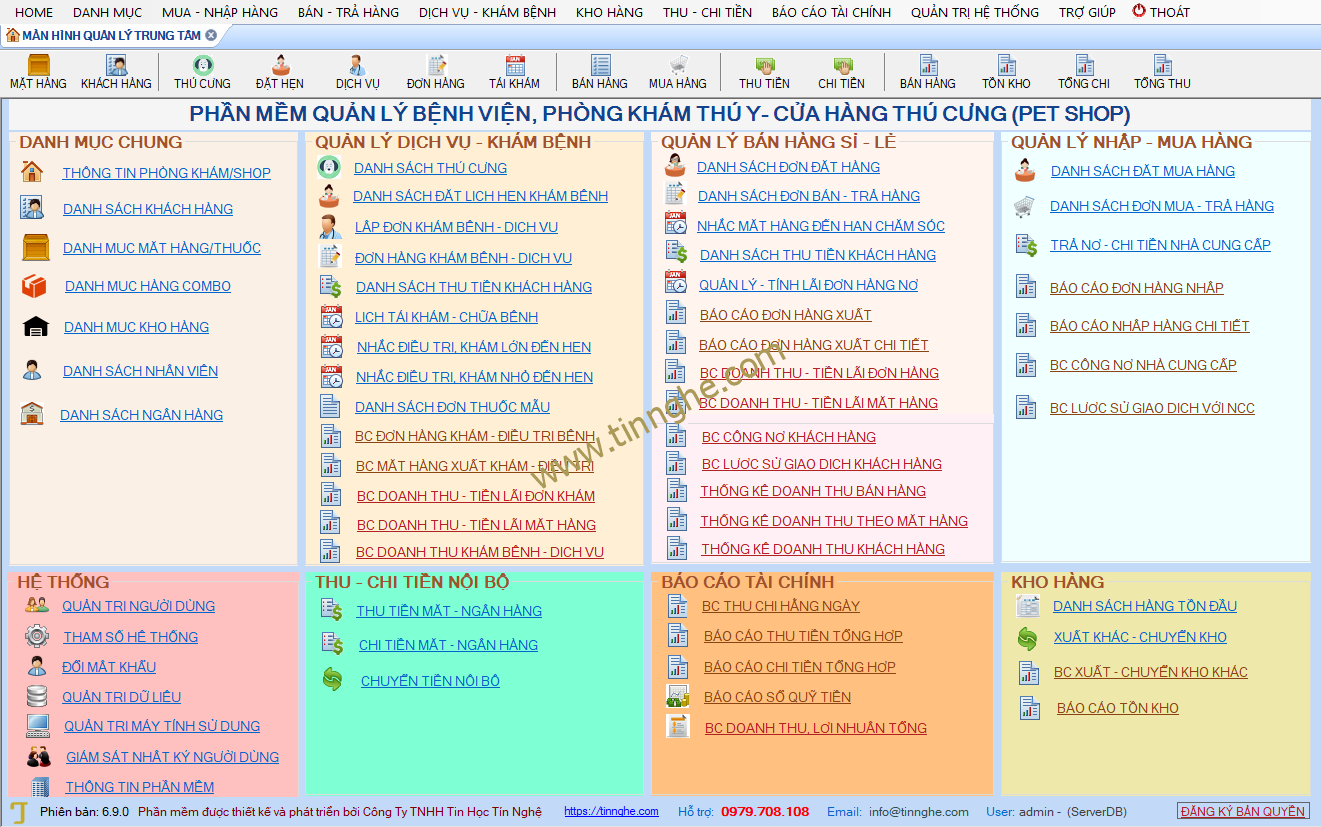 - Phần mềm dùng được cho cả hệ thống nhiều trung tâm/ cửa hàng Thú Y dùng chung với giải pháp sử dụng chung server dữ liệu. (thuê server của Tín Nghệ hoặc khách hàng đã có sẵn server )
